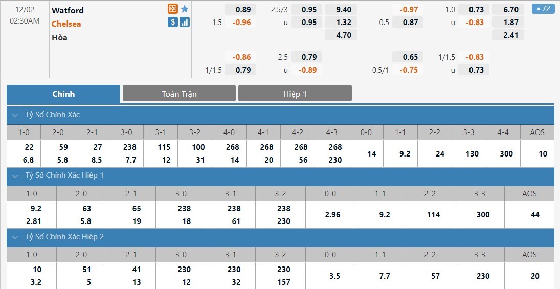 Soi kèo tổng quát Watford vs Chelsea