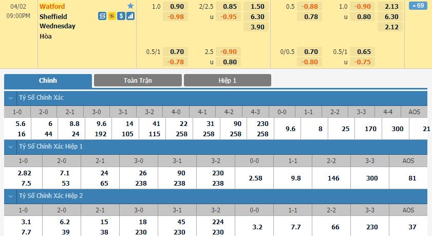 Soi kèo tài xỉu, kèo tỷ số Watford vs Sheffield Wednesday