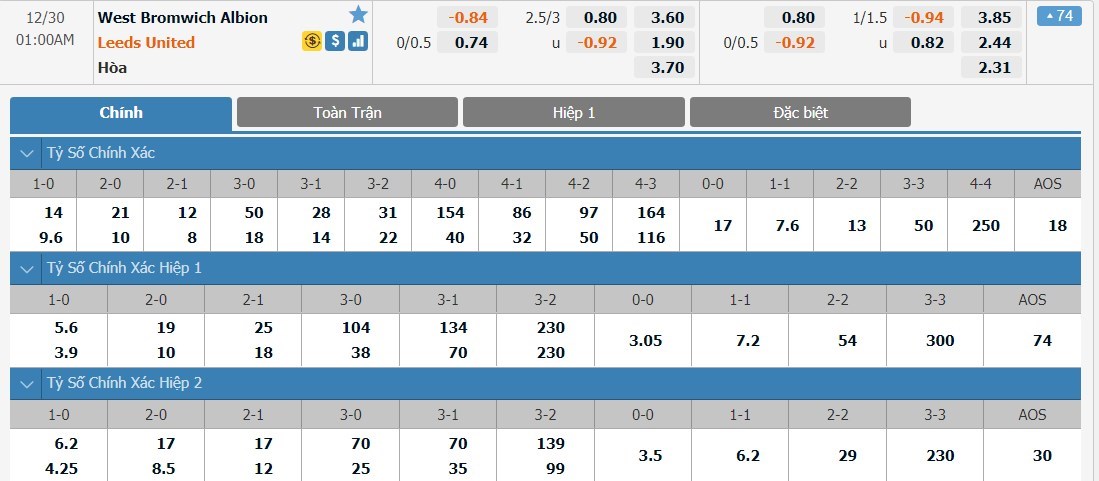 West Brom vẫn đang thể hiện một lối chơi rất thiếu hiệu quả. Ở liên tiếp 4 vòng đấu gần đây, West Brom đều không thắng và thậm chí họ để thua ở 3/4 trận đấu nói trên. West Brom sẽ là đối thủ rất vừa sức cho Leeds và trên thực tế Leeds cũng đang thi đấu không quá tệ ở mùa giải năm nay. So với West Brom, chắc chắn là Leeds đang trình diễn được một lối chơi hiệu quả hơn. West Brom cũng là đội tấn công rất tệ và điểm yếu phòng ngự của Leeds có thể cũng sẽ không bị khai thác quá nhiều ở trận này. Với tỷ lệ chấp 1/4 trái, Leeds sẽ là lựa chọn cho kèo full time.