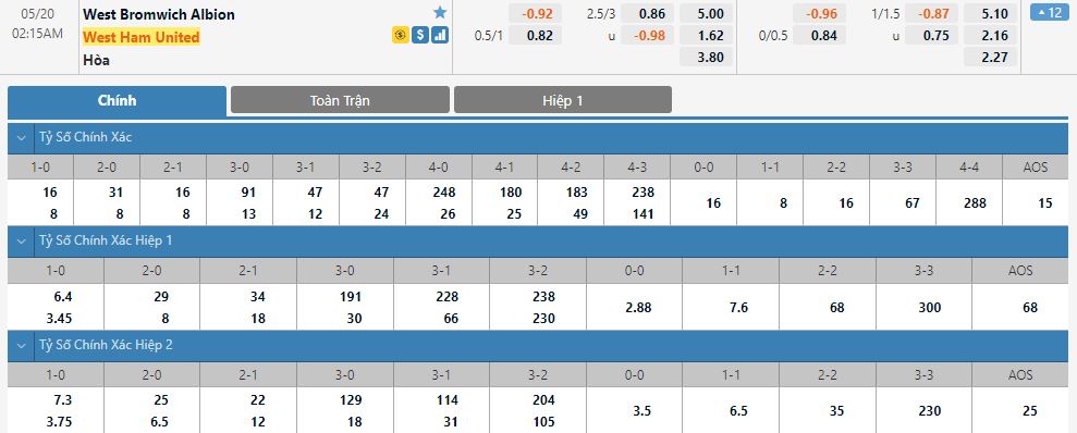 Soi kèo tổng quát West Bromwich vs West Ham United