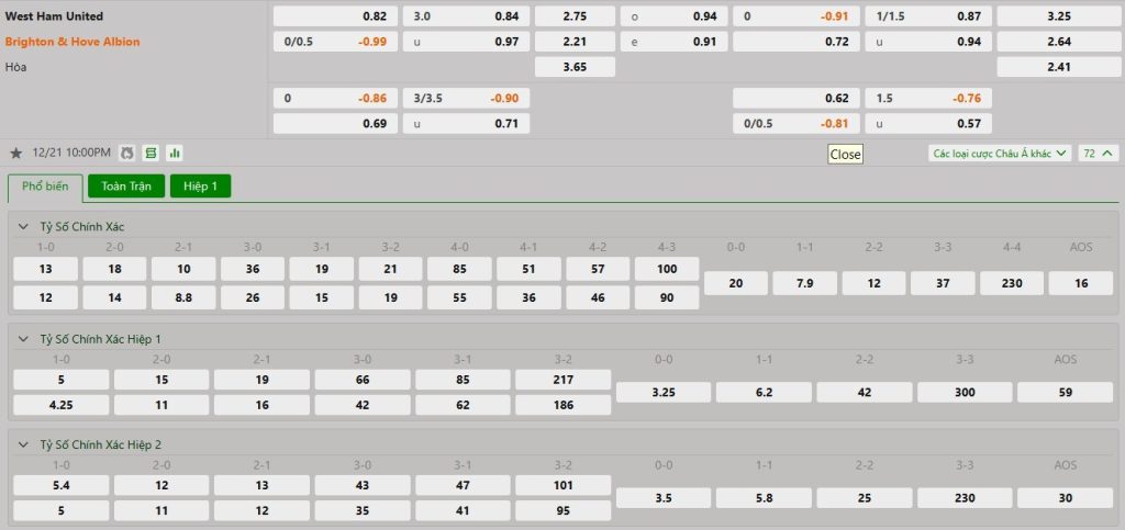 Soi kèo châu Á West Ham United vs Brighton