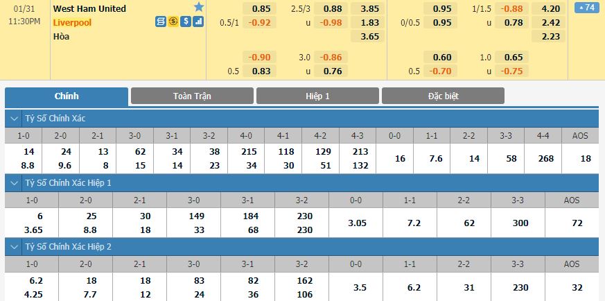 Soi kèo tài xỉu, kèo tỷ số West Ham United vs Liverpool