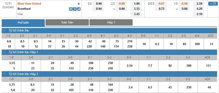 Soi kèo tổng quát West Ham vs Brentford