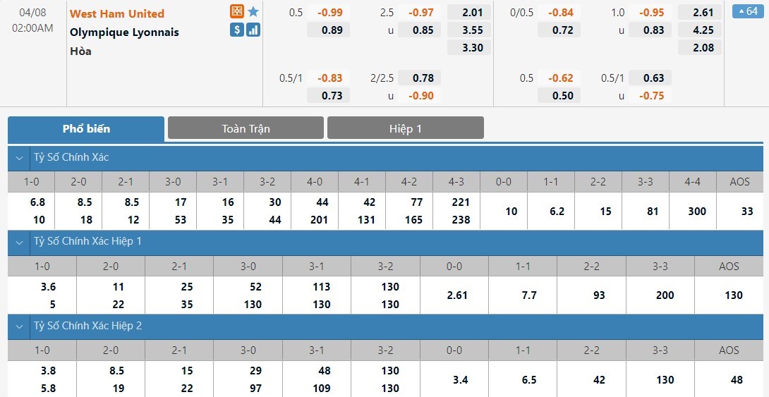 Soi kèo tổng quát West Ham vs Lyon