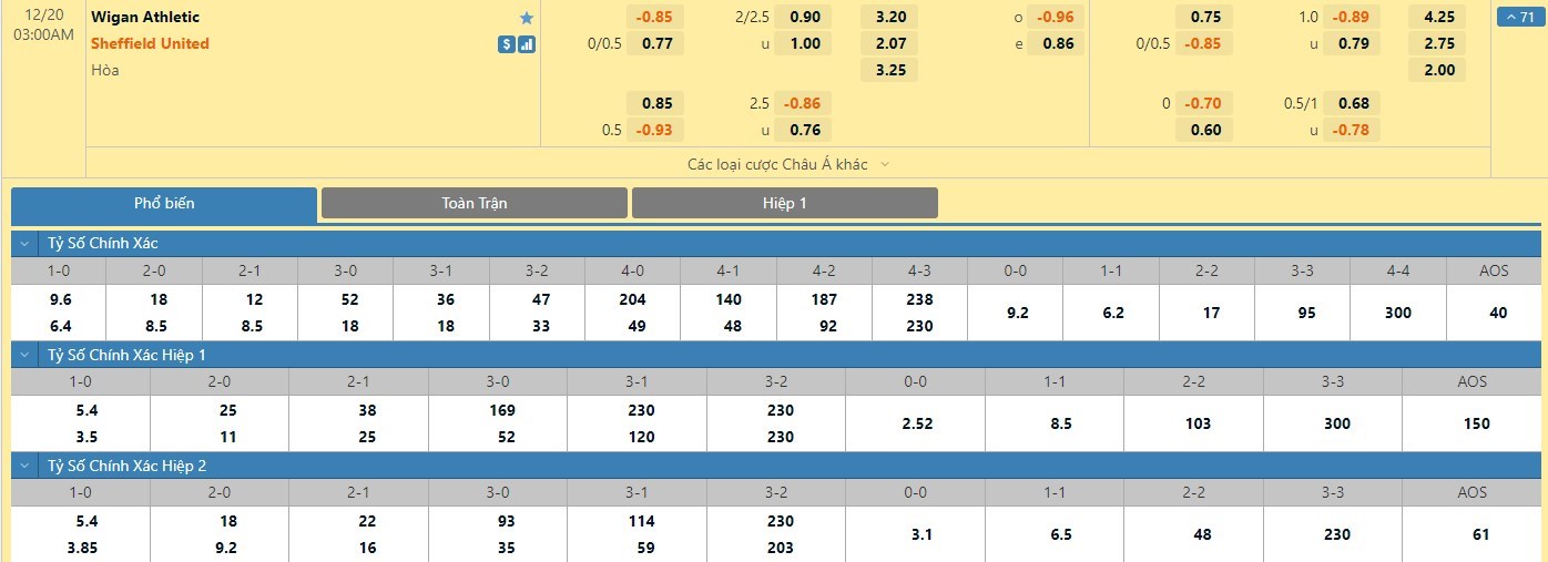 Soi kèo tổng quát Wigan Athletic vs Sheffield United