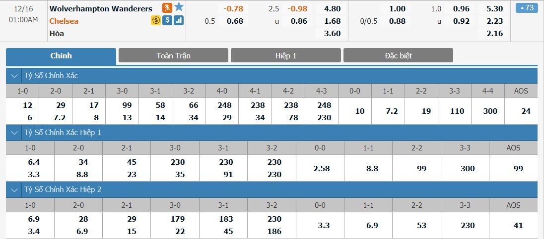 Soi kèo tổng quát Wolverhampton vs Chelsea
