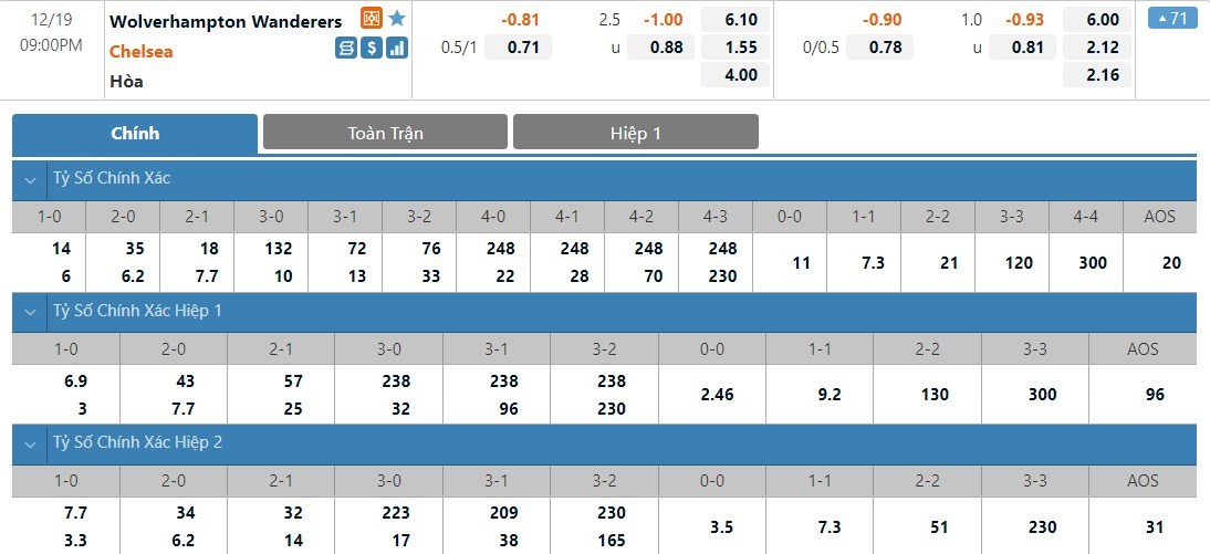 Soi kèo tổng quát Wolverhampton vs Chelsea