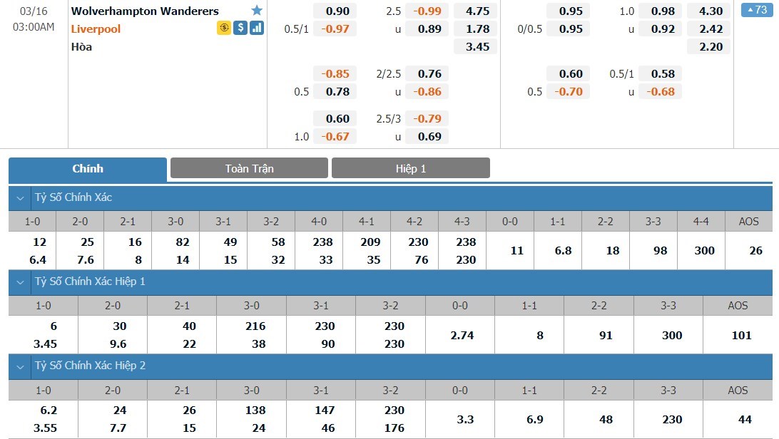 Soi kèo tổng quát Wolverhampton vs Liverpool