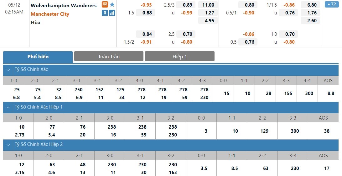 Soi kèo tài xỉu, kèo tỷ số Wolverhampton vs Manchester City