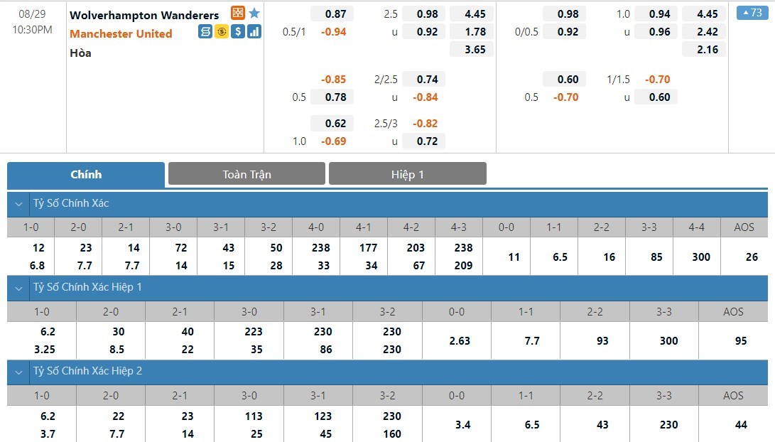 Soi kèo châu Á Wolverhampton vs Manchester United