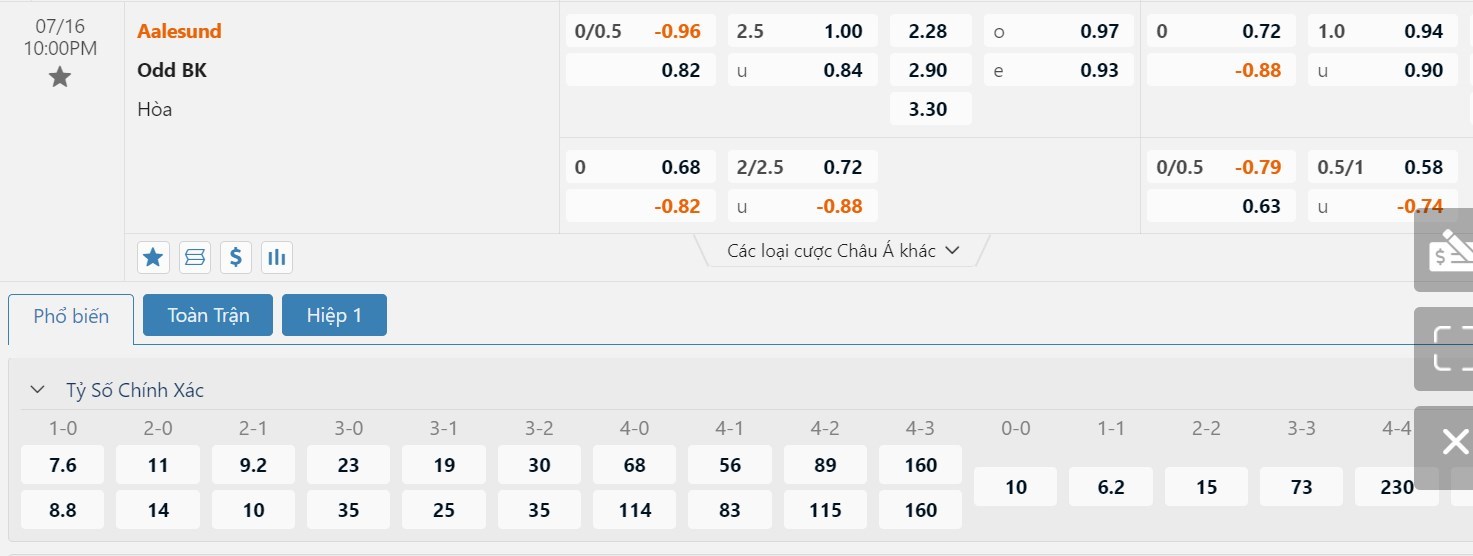 Tip kèo tỷ số hiệp 1: Aalesund 1-1 Odd
