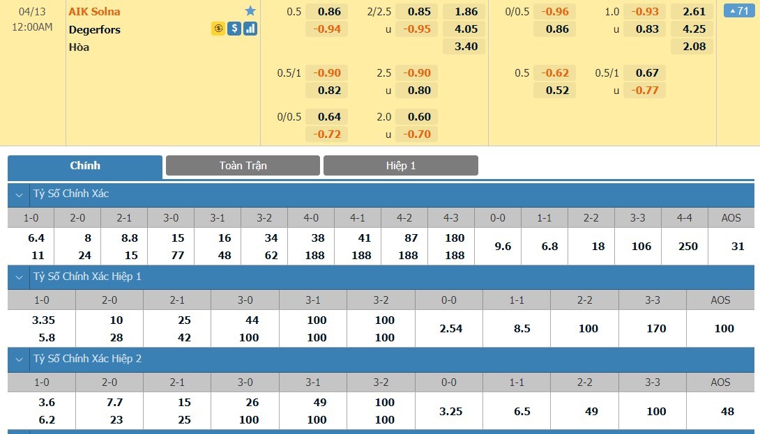 Tip kèo Châu Á hiệp 1: Chọn Degerfors +1/4