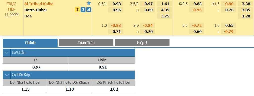 Tip kèo Châu Á hiệp 1: Chọn Al Ittihad Kalba -1/4