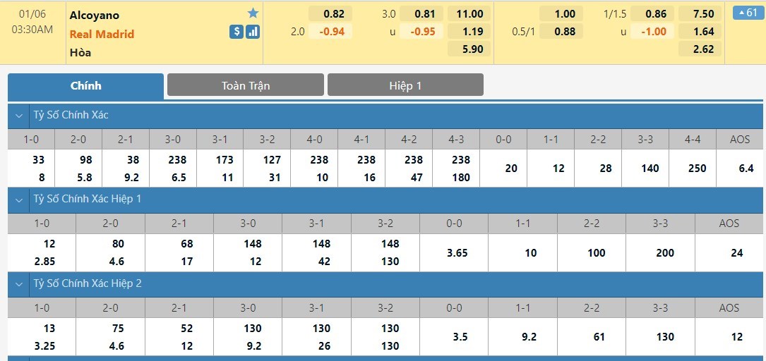 Tip kèo tỷ số hiệp 1:Alcoyano 0-2 Real Madrid