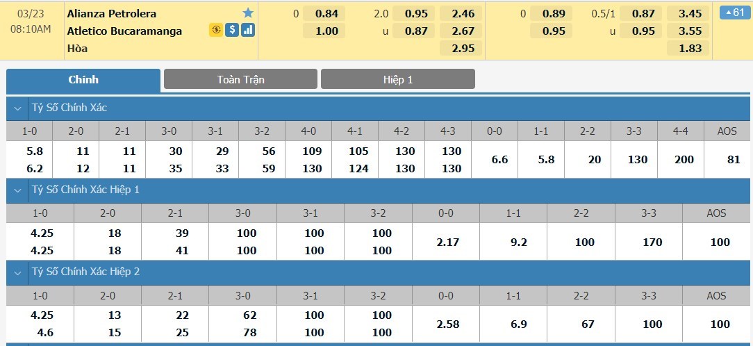 Alianza Petrolera tuy sắm vai chủ nhà nhưng họ lại không hề được giới chuyên môn đánh giá cao hơn ở kèo đấu này. Rõ ràng là nhìn vào chuỗi 11 trận không thắng suốt từ đầu mùa giải đến nay thì Alianza Petrolera không phải một cái tên tiềm năng để giới mộ điệu xuống tiền. Xét lịch sử đối đầu giữa hai đội trong 10 cuộc chạm trán gần nhất thì có 3 chiến thắng dành cho Alianza Petrolera và 7 trận đấu còn lại là những thắng lợi thuộc về Bucaramanga. Một chiến thắng là mục tiêu hoàn toàn khả thi đối với các cầu thủ Bucaramanga. Chủ nhà Alianza Petrolera mới có 8 bàn thắng, trong khi con số của Bucaramanga cũng chỉ là 10 bàn. Thế nên đây không phải trận đấu có thể xuất hiện nhiều bàn thắng.