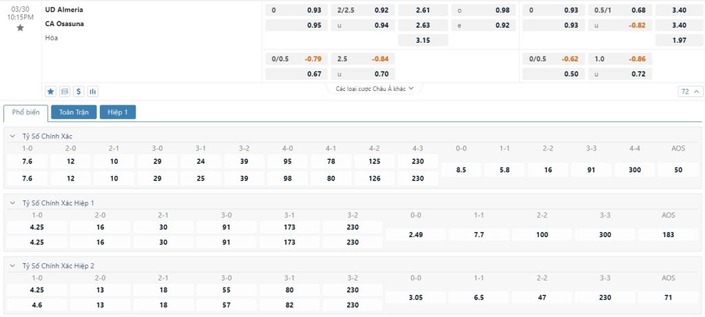 Tip kèo tỷ số hiệp 1: Almeria 0-0 Osasuna