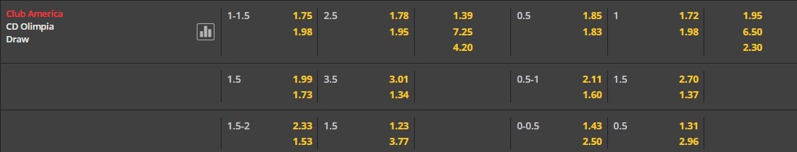 Giữa tuần tới America sẽ có cuộc tiếp đón các cầu thủ Olimpia trong khuôn khổ lượt về vòng 1/8 giải VĐ các CLB Concacaf. Thực tế thì đội khách vẫn chưa được xem là đối thủ xứng tầm với chủ nhà ở sân chơi châu lục. Hơn nữa họ cũng nắm lợi thế khá lớn sau trận lượt đi. Vì vậy việc đại diện của Mexico có dành vé đi tiếp cũng chẳng phải điều gì quá bất ngờ.