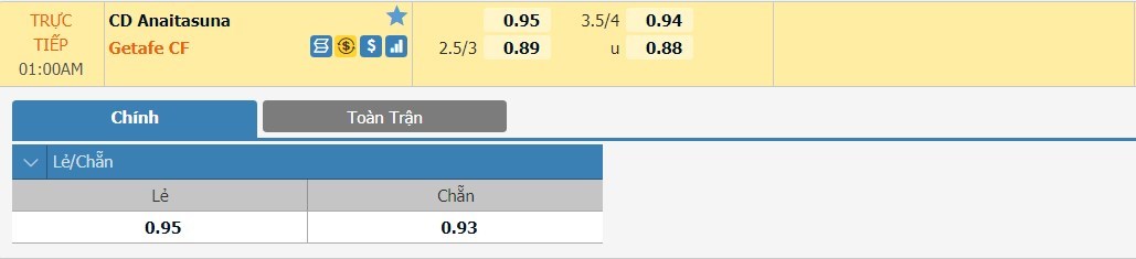 Tip kèo tỷ số hiệp 1: Anaitasuna 0-0 Getafe