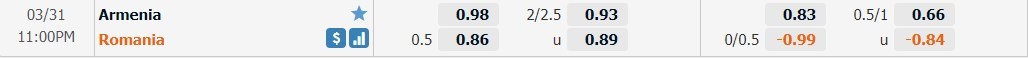 Tip kèo tỷ số hiệp 1: Armenia 0-0 Romania
