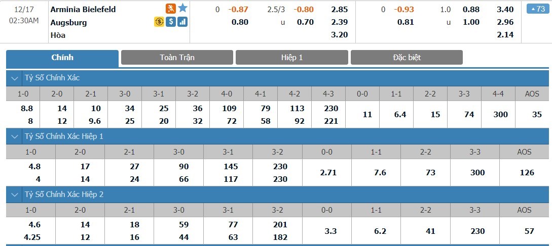 Xét về thực lực 2 đội, Augsburg đang tỏ ra nhỉnh hơn đôi chút so với Arminia Bielefeld. Phong độ của đội chủ nhà cũng đang là rất tệ và Augsburg được dự đoán sẽ là cái tên giành chiến thắng ở trận này. 4/5 trận gần nhất của Arminia Bielefeld và 4/6 trận gần nhất của Augsburg đều kết thúc với ít nhất 3 bàn thắng được ghi. Cả 2 đội bóng này đều đang thi đấu thiếu chặt chẽ và những trận đấu của họ đang có xu hướng xuất hiện khá nhiều bàn thắng. Với kèo đấu này, ô cược tài sẽ là một lựa chọn không tệ.