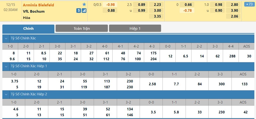 Tip kèo tỷ số hiệp 1: Arminia Bielefeld 1-1 Bochum
