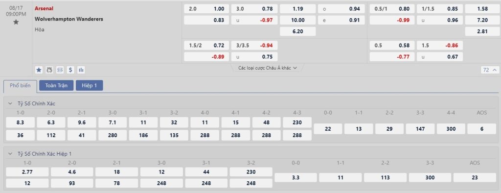 Trước khi bước vào mùa giải mới, Arsenal đã tham dự 5 trận giao hữu. Kết quả họ thu về là khá khả quan với 3 chiến thắng, 1 trận hòa và chỉ để thua 1 trận tính trong thời gian thi đấu chính thức. Với những gì đã thể hiện, Arsenal vẫn đang được đánh giá cao ở mùa giải năm nay. Ở chiều ngược lại, Wolverhampton không có sự chuẩn bị tốt nhất trước khi bước vào vòng đấu mở màn. Wolverhampton đã để thua 2 trận trong 4 trận giao hữu gần nhất. Dựa vào những gì đã phân tích thì người chơi có thể mạnh dạn đặt niềm tin vào ô cược Arsenal chấp mốc tỷ lệ -2 trái.