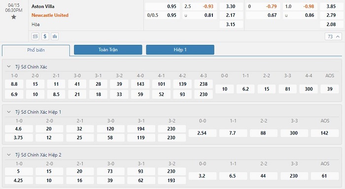 Với việc toàn thắng cả 3 trận sân nhà gần nhất, các nhà đầu tư nên tin tưởng vào đội chủ nhà trận này để mang về cơ hội thắng kèo cao hơn. Trong 5 trận đấu gần nhất hai bên đối đầu nhau trực tiếp, Aston Villa đã có 2 trận đấu mang về được cho mình ít nhất là 1 bàn thắng trong hiệp đấu đầu tiên. Còn với Newcastle, đội bóng này đã có 2 lần làm được điều tương tự. Với kèo hiệp 1 thì người chơi nên tin tưởng vào kịch bản có lợi dành cho đội chủ sân Villa Park.