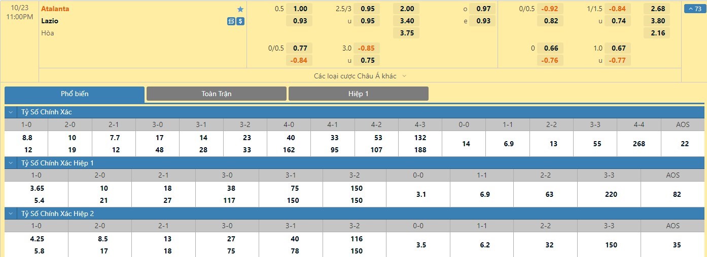 Trong 5 trận đấu gần nhất hai đội đụng độ nhau trực tiếp, nếu như Atalanta đã có 3 trận đấu mang về được cho mình ít nhất là 1 bàn thắng trong hiệp đấu đầu tiên thì Lazio đã có 3 lần nào làm được điều này trong 45 phút đầu tiên. Với tỷ lệ kèo hiệp 1 ở trận đấu này được đưa ra là Atalanta chấp -1/4 trái thì người chơi nên tin tưởng vào đội khách trận này.
