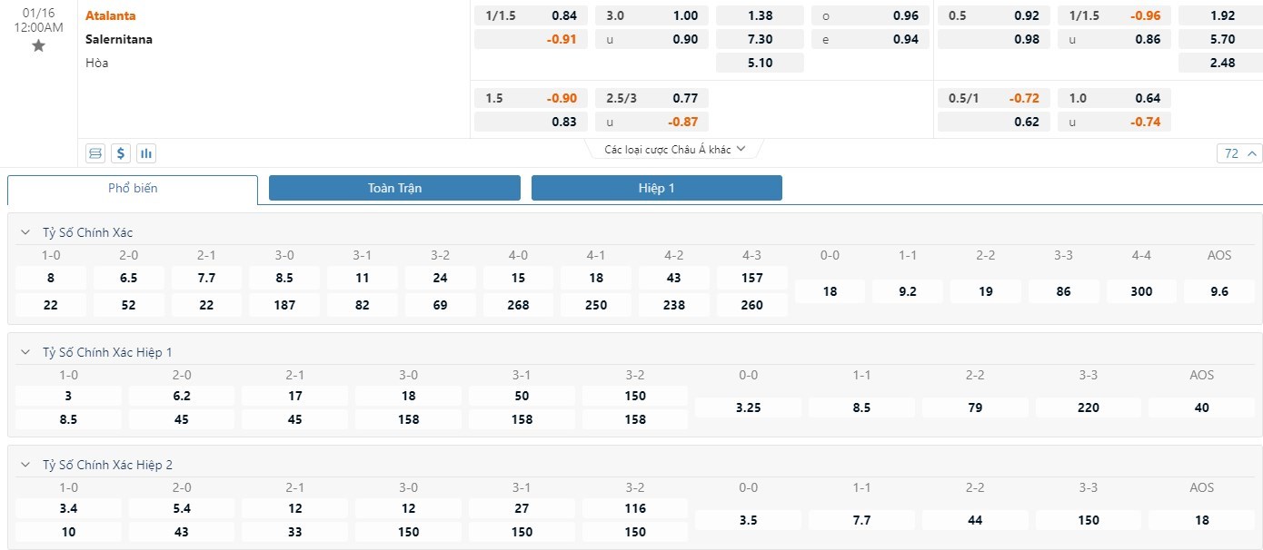 Xét trong 4 lần chạm trán gần nhất giữa hai đội, ưu thế đang nghiêng rõ rệt về phía các cầu thủ Atalanta. Cụ thể, họ giành 2 chiến thắng và 2 trận hòa. Dễ hiểu khi nhà cái dành cho Atalanta vị thế cửa trên cùng mốc chấp sâu -1 1/4 trái kèo đấu này. Atalanta nắm giữ nhiều ưu thế để mang về trọn vẹn 3 điểm. Hơn nữa, Salernitana cho thấy sự lỏng lẻo nơi hàng phòng ngự khi đội bóng này đã để thủng lưới 27 lần. Hàng công của Atalanta đã có 26 bàn thắng, với những cầu thủ chất lượng trên hàng công thì họ hoàn toàn có thể tạo ra một thắng lợi giòn giã trước đội khách thua kém nhiều về mặt trình độ. Thống kê trong 10 trận đấu gần nhất của Atalanta thì có đến 9 trận xuất hiện từ 3 bàn trở lên. Thêm nữa, 5 trận đấu gần nhất Salernitana phải chơi trên sân khách cũng có tối thiểu 3 bàn thắng mỗi trận.