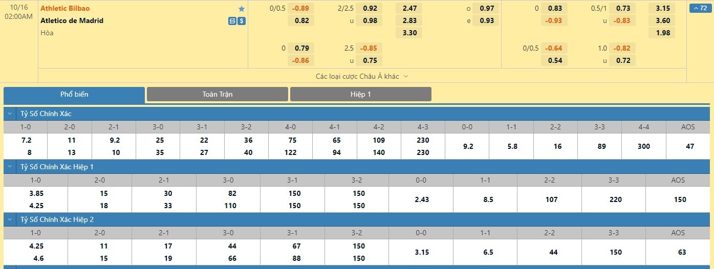 Trong 5 trận đấu gần nhất hai đội bóng này chạm trán nhau trực tiếp, Athletic Bilbao đã có 3 trận đấu mang về được cho mình ít nhất là 1 bàn thắng trong hiệp đấu đầu tiên. Còn với Atletico Madrid, đội bóng này chỉ có 1 lần làm được điều này trong 45 phút đầu tiên. Với kèo hiệp 1 ở trận đấu này thì người chơi nên tin tưởng vào đội chủ nhà trận này.