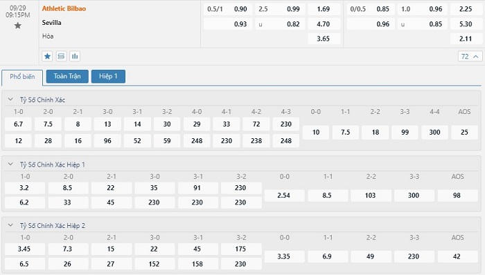 Tip kèo tỷ số hiệp 1: Athletic Bilbao 0-0 Sevilla
