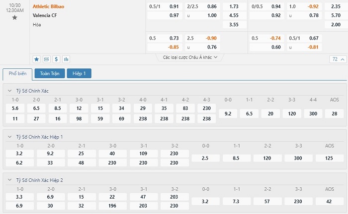 Tip kèo Châu Á hiệp 1: Chọn Athletic Bilbao vs Valencia[đưa tỷ lệ]