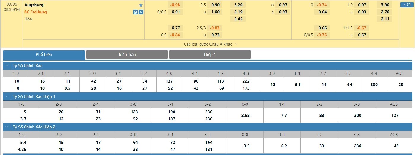 Nếu như Augsburg đã có được cho mình 2/5 trận đấu gần nhất mang về 1 bàn thắng trong hiệp đấu đầu tiên thì Freiburg đã có 3 lần làm được điều này. Freiburg dù là đội bóng sở hữu dàn cầu thủ chất lượng nhỉnh hơn nhưng việc phải đến chơi trên sân khách cũng là một trở ngại khiến họ phải thận trọng. Với tỷ lệ kèo hiệp 1 là đội khách chấp tỷ lệ -1/4 trái thì người chơi nên tin tưởng vào đội chủ nhà để mang về cơ hội thắng cao hơn.