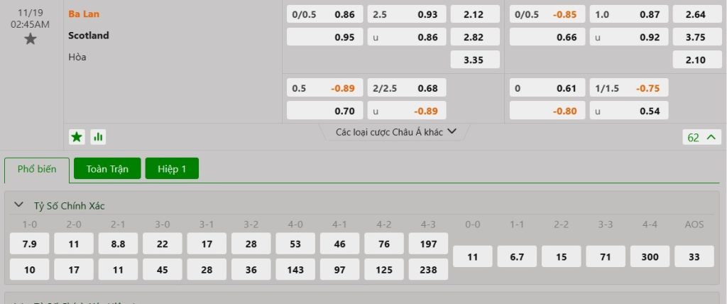Tip kèo tỷ số hiệp 1: Ba Lan 0-0 Scotland