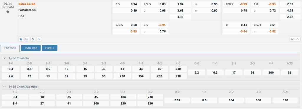 Chuyến hành quân sắp tới đến gặp đội chủ nhà Bahia dự báo sẽ là một trận đấu khó khăn dành cho các cầu thủ Fortaleza. Thành tích trên sân khách của Fortaleza gần đây là không tốt. Họ chỉ thắng 1 trận hiếm hoi trong 6 trận gần nhất phải chơi xa nhà. Ở chiều ngược lại, Bahia đang sở hữu thành tích đáng nể tại lãnh địa của mình. Trong 16 trận sân nhà gần đây, Bahia giữ cho mình thành tích bất bại với 14 chiến thắng và 2 trận hòa. Thêm một lý do nữa để người chơi đặt niềm tin vào đội chủ nhà trận này đó là trong lần gần nhất hai đội đụng độ diễn ra trên sân nhà của Bahia thì đội bóng này đã giành chiến thắng với tỷ số 2-0. 6/7 trận gần nhất của Bahia kết thúc mà không vượt qua mốc 2 bàn thắng. Cửa Xỉu sẽ là sự lựa chọn tối ưu dành cho giới mộ điệu.