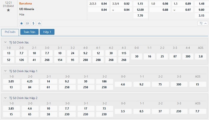 Tip kèo tỷ số hiệp 1: Barcelona 2-0 Almeria