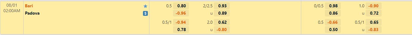 Nếu như Bari đã có được cho mình 2/5 trận đấu gần nhất mang về 1 bàn thắng trong hiệp đấu đầu tiên thì Padova chỉ có 1 lần làm được điều này. Sự vượt trội của Bari là không đáng kể so với đối thủ. Với kèo hiệp 1, thì người chơi nên tin tưởng vào kết quả Hòa.