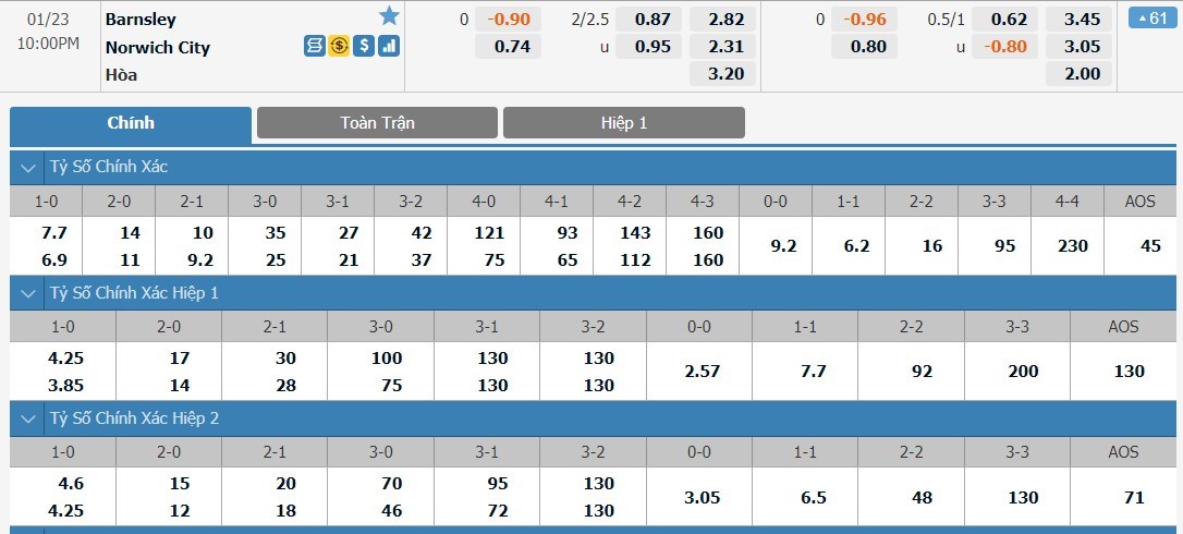 Ở cuộc đấu giữa 2 đội ngay cách đây 3 tuần tại Championship, Barnsley thua Norwich với tỷ số tối thiểu. Hiện tại, phong độ của đôi bên là hoàn toàn trái ngược. Barnsley toàn thua 3 vòng đấu gần đây nhất của mình còn Norwich có trọn vẹn 9 điểm. Dù phải làm khách nhưng với việc Barnsley chơi không tốt tại sân nhà, cơ hội để Norwich đi tiếp là rất lớn. 3 cuộc chạm trán gần nhất giữa 2 đội đều có kết quả tối đa 2 bàn thắng mỗi trận. 3 vòng trước đó ở Championship, Barnsley hoàn toàn tịt ngòi còn Norwich có 3 trận giữ sạch lưới. Vì thế, bàn thắng khó xuất hiện nhiều ở trận tới.