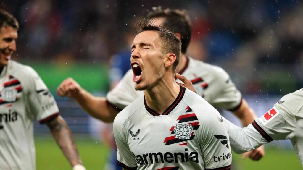 Leverkusen: Hradecky; Kossounou, Tah, Tapsoba; Frimpong, Palacios, Xhaka, Grimaldo; Adli, Wirtz; Schick.
