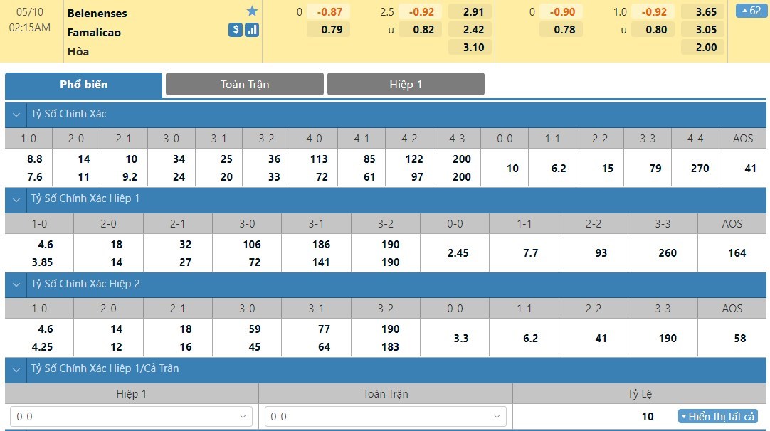 Tip kèo tỷ số hiệp 1: Belenenses 0-0 Famalicao