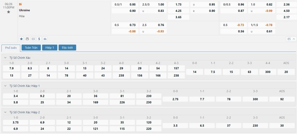 Tip kèo tỷ số hiệp 1: Bỉ 1-0 Ukraine