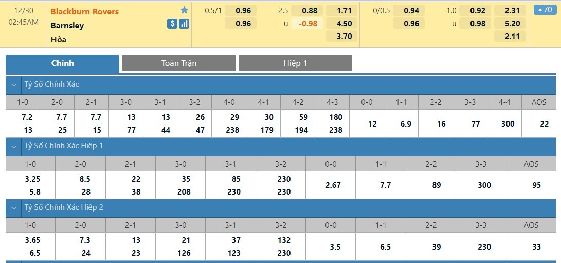 Tip kèo tỷ số hiệp 1: Blackburn 0-0 Barnsley