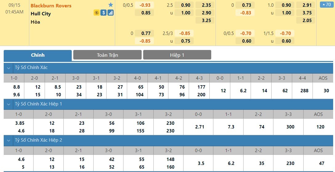 Với lối chơi đều khá cởi mở, 2 đội được dự đoán sẽ sớm đẩy cao đội hình ngay sau tiếng còi khai cuộc để tìm kiếm bàn thắng. Ở hiệp 1, mức chấp kèo được đưa ra khá hợp lý là mức cân bằng. Dù vậy, lựa chọn đầu tư thì Blackburn sẽ là hướng mà người chơi nên ưu tiên với lợi thế được chơi trên sân nhà Ewood Park của họ. Cần biết rằng trên sân nhà của mình, Blackburn toàn thắng cả 2 lần gần nhất đón tiếp Hull City.