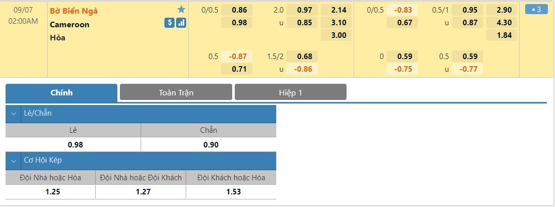 Tip kèo Châu Á hiệp 1: Chọn Cameroon +1/4