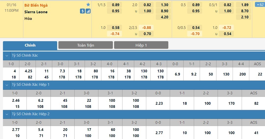 Tip kèo tỷ số hiệp 1: Bờ Biển Ngà 1-0 Sierra Leone