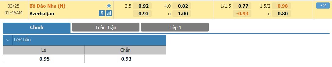 Trận đấu giữa hai đội bóng có vị trí thứ 10 và thứ 114 trên bảng xếp hạng FIFA rõ ràng không cần bàn cãi nhiều về xác suất chiến thắng. Trong khi Azerbaijan ngụp lặn trong chuỗi trận chỉ hòa và thua thì 3/4 chiến thắng gần nhất càng củng cố thêm niềm tin của cổ động viên dành cho đội chủ nhà. Bồ Đào Nha sẽ là lựa chọn hợp lý ở kèo châu Âu nhưng khả năng để thắng kèo chấp châu Á có lẽ không thật sự sáng nước.