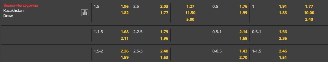 Tip kèo tỷ số hiệp 1: Bosnia & Herzegovina 1-0 Kazakhstan
