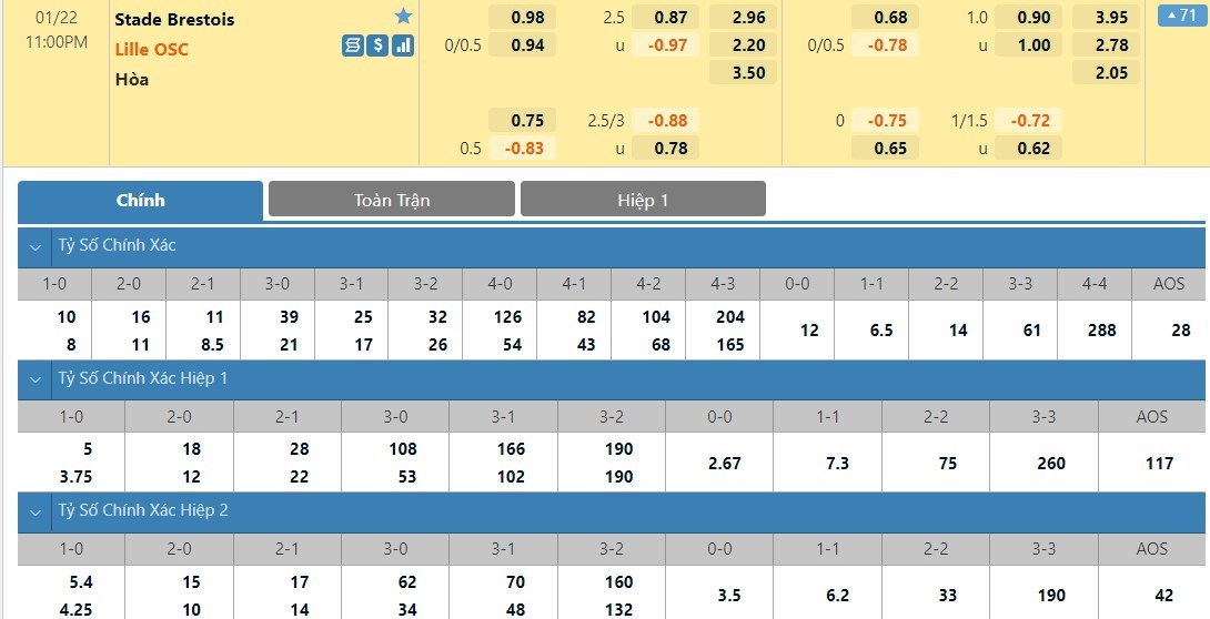 Tip kèo tỷ số hiệp 1: Brest 0-0 Lille