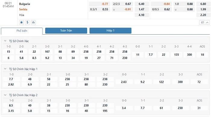 Tip kèo tỷ số hiệp 1: Bulgaria 0-0 Serbia