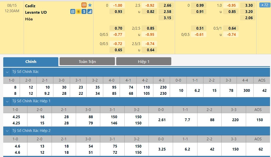 Lịch sử đã cho thấy đây là 1 cặp đấu cực kỳ cân bằng. Cụ thể trong 5 lần gần nhất 2 đội gặp nhau thì đã có tới 4 lần họ bất phân thắng bại. Có thể thấy mọi yếu tố so sánh giữa Cadiz và Levante đều ở mức độ ngang ngửa. Vậy nên ở kèo châu Âu thì hòa sẽ là lựa chọn khôn ngoan của các nhà đầu tư. Kết quả thống kê cho thấy trong 5 lần ra sân gần nhất thì chủ nhà chỉ mang về được vỏn vẹn 5 bàn thắng. Trong khi đó phía đối diện đội khách thậm chí chỉ sở hữu 2 bàn thắng sau 5 lần ra sân. Những kết quả cho thấy hàng công của đôi bên đều đang thi đấu cực kỳ tệ. Với kèo tài xỉu của trận này thì xỉu vẫn sẽ là lựa chọn đáng tin cậy hơn.
